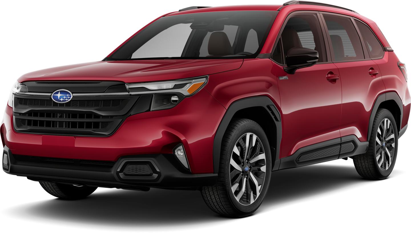 While both Forester variants have similar trim rosters, only the gas-powered version is available in Wilderness form. This rugged trim level further amplifies the Forester's capability beyond the asphalt with terrain-tuned suspension, taller ground clearance, and dual-function X-MODE®. It also includes Yokohama all-terrain tires, a 180-degree front camera, and reinforced roof rails (700-pound stationary load limit) that are ideal for a rooftop tent.