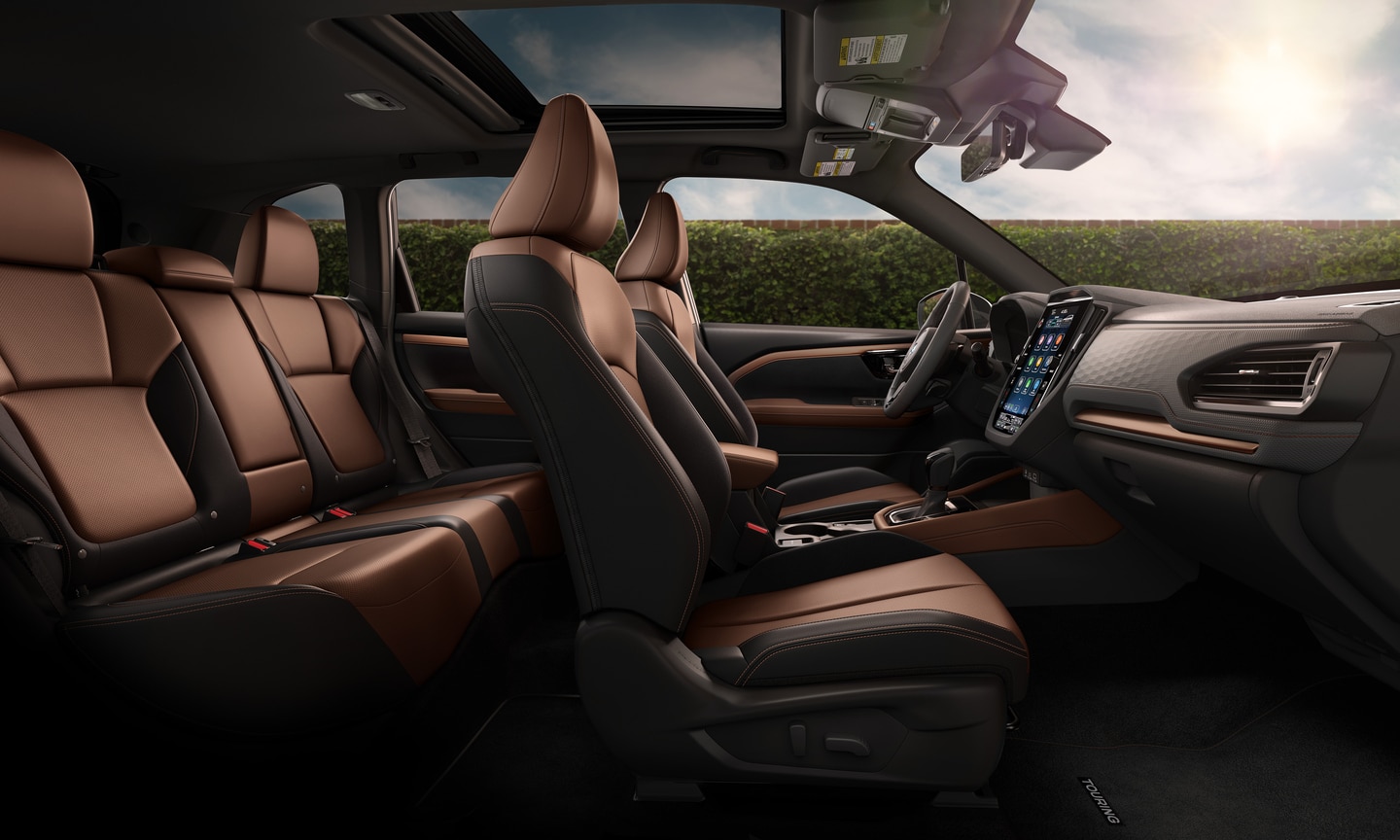 The Subaru Forester and Forester Hybrid both offer an open and accommodating cabin that's a nice place to pass the miles. The interior features nicely cushioned and supportive seats, modern design details, and ample headroom and legroom for occupants in either row. Most trims have a 27.5 cubic-foot cargo area for your luggage or adventure gear. When your Massapequa outings require more storage, you can fold the rear seats to access 69.1 cubic feet. However, the gas-powered Forester has a base model without a panoramic sunroof, which expands cargo capacity to 28.9 cubic feet behind the second row and 74.2 cubic feet with the rear seats folded.